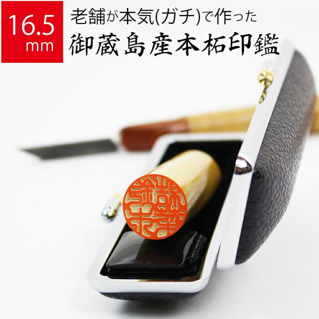 印鑑 はんこ 銀行印 御蔵島産本柘 ケースあり 実印 認印 個人印 ハンコ 仕事 職場 16.5mm丸×60mm 牛もみ革ケース 10年保証