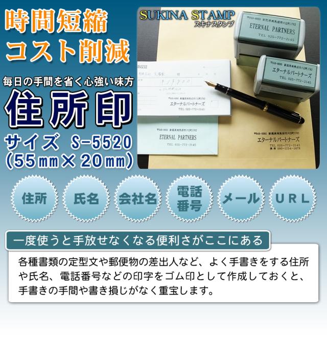 ゴム印 会社 社判 55mm×20mm 選べるレイアウト 印鑑 はんこ オーダー 社名 住所 スキナスタンプ キャップレス 年賀状