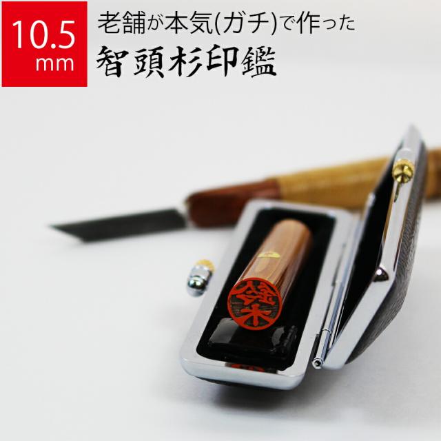 印鑑 はんこ 銀行印 智頭杉 ケースあり 実印 認印 個人印 ハンコ 仕事 職場 10.5mm丸×60mm 牛もみ革ケース 10年保証