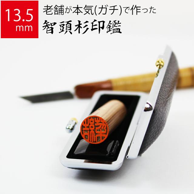 印鑑 はんこ 銀行印 智頭杉 ケースあり 実印 認印 個人印 ハンコ 仕事 職場 13.5mm丸×60mm 牛もみ革ケース 10年保証