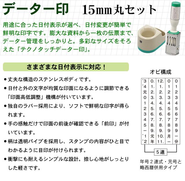 ゴム印 データー印 日付印 テクノタッチ スタンド小セット 社判 はんこ 印鑑 スタンプ 社名 オーダー 5号 15mm 丸
