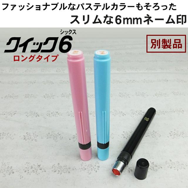 ネーム印 ゴム印 クイック6 別注品 ロングタイプ オーダー 姓 苗字 6mm丸 カラー かわいい 3色