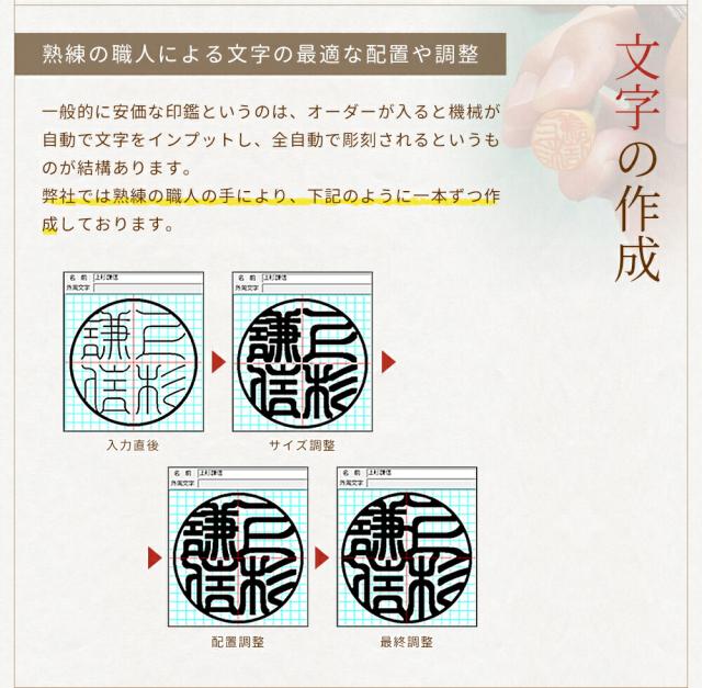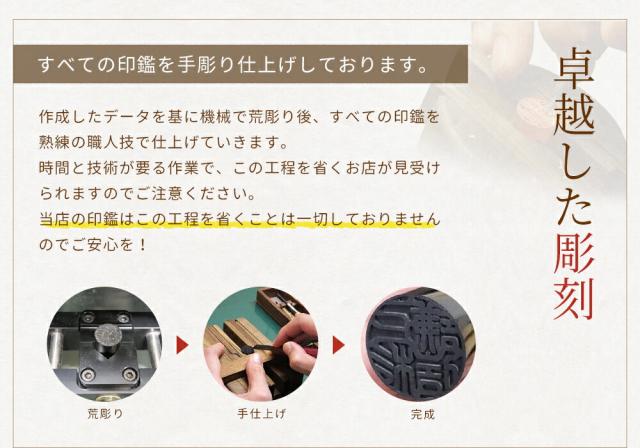 当店では熟練の職人の手により一本ずつ印影を作成しております。