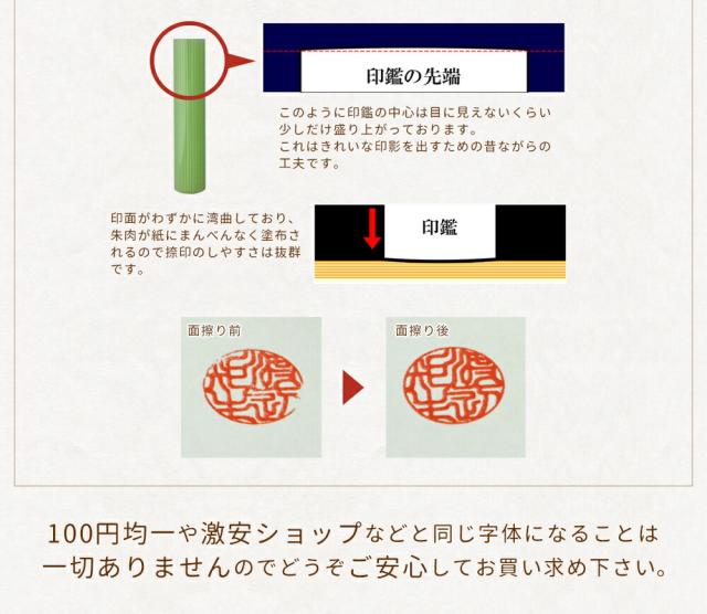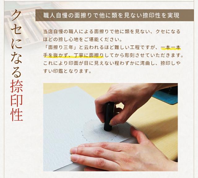 時間と技術がいる作業で、この工程を省くお店が多数お見受けされますので印鑑の購入にはご注意ください。