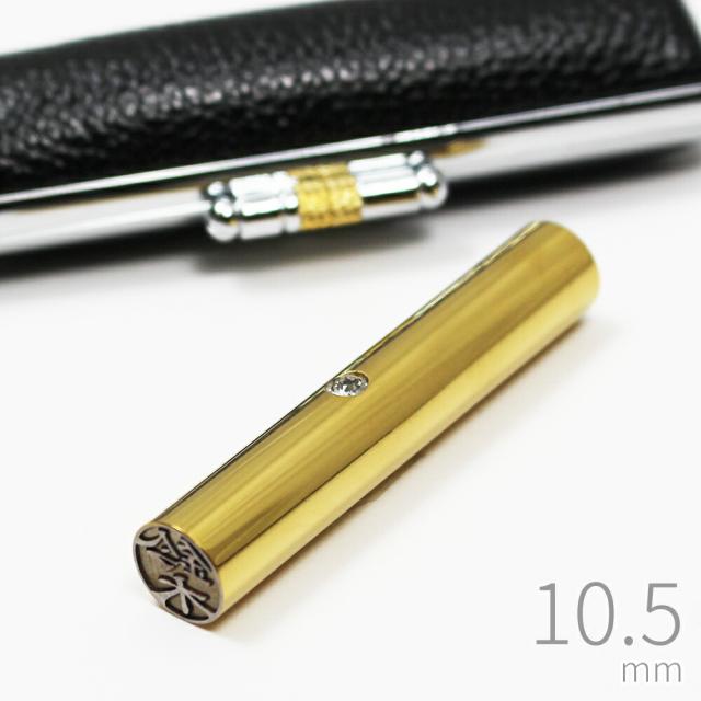 印鑑 はんこ プレミアム チタン 極 ゴールド 牛モミケース付き 判子 実印 銀行印 認印 10.5mm丸 ラインストーン
