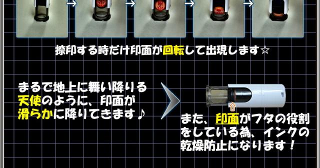 捺印するときに印面が回転して出てくるので、インクの乾燥防止にもなっています。