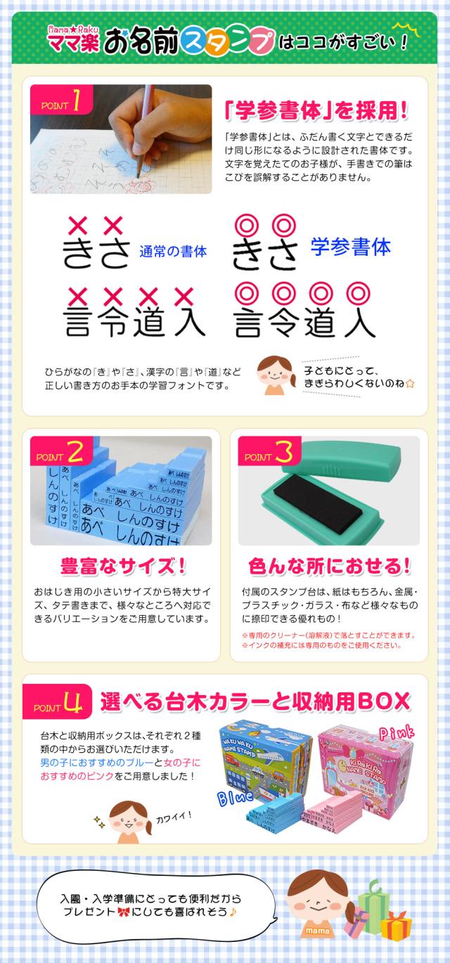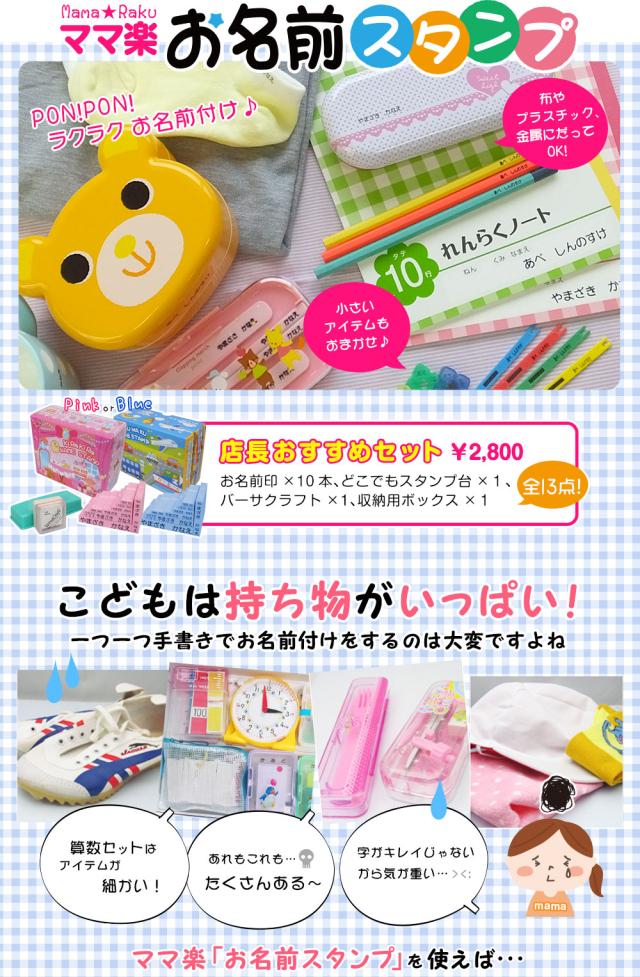 お名前スタンプ ママ楽 13点セット はんこ スタンプ おなまえ 入園 入学 子供 赤ちゃん おむつ おはじき 上履き オーダー ブルー ピンク