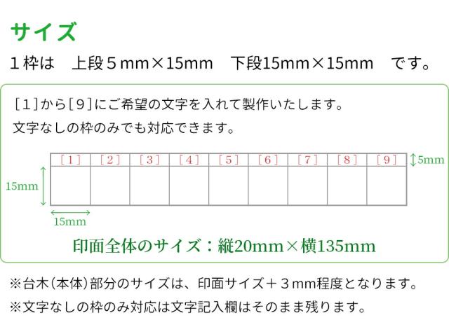枠印 9枠 角枠印 20mm×135mm ゴム印 はんこ スタンプ 回覧印 オーダー