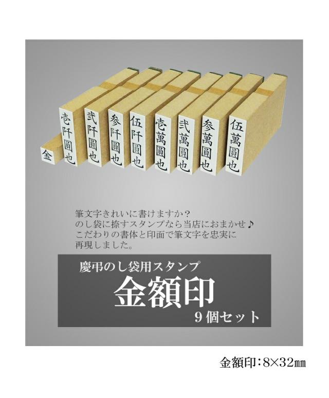 達筆名人 慶弔 金額印セッ 8mm×32mm 9個セット! スタンプ ゴム印 のし 熨斗 香典 御祝儀 はんこ