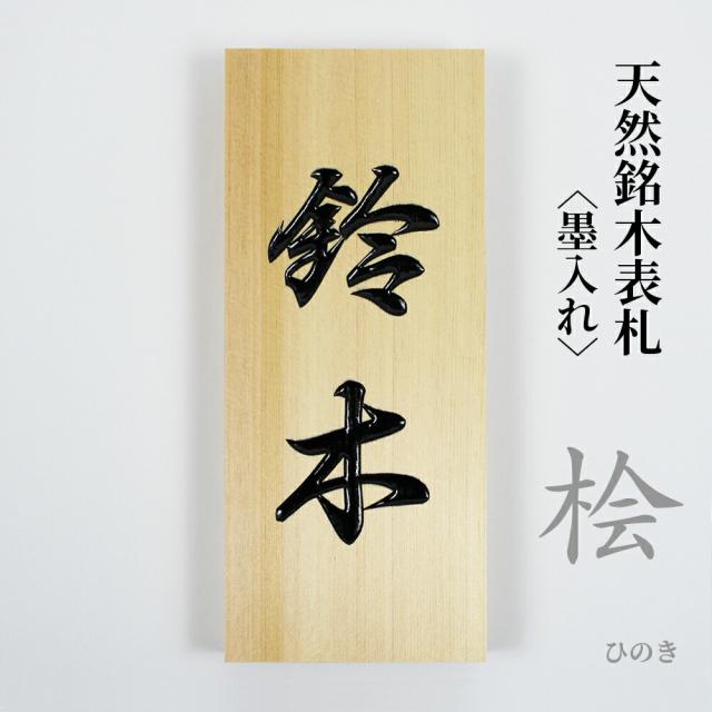 天然銘木表札 桧(ひのき) 墨入れ仕上げ