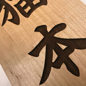 | レーザー彫刻システム採用 レーザー彫刻機にて彫刻しております。 レーザーを使った木材の彫刻は、人間の手では実現できないような微細な表現まで可能にし、ロゴや落款なども美しく仕上がります。 |