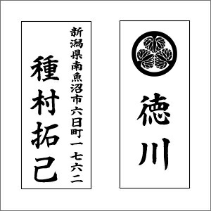 | 家紋やロゴ入れOK 別途1,000円 家紋やロゴを入れる事も可能です! 家紋等を入れる場合にはFAX若しくはメールにて画像をお送り下さい。 ※画像データは2階調でお願いします。(グレースケール不可) 行数の増加OK 別途1,000円 住所や連名など、2行での彫刻も可能です! |