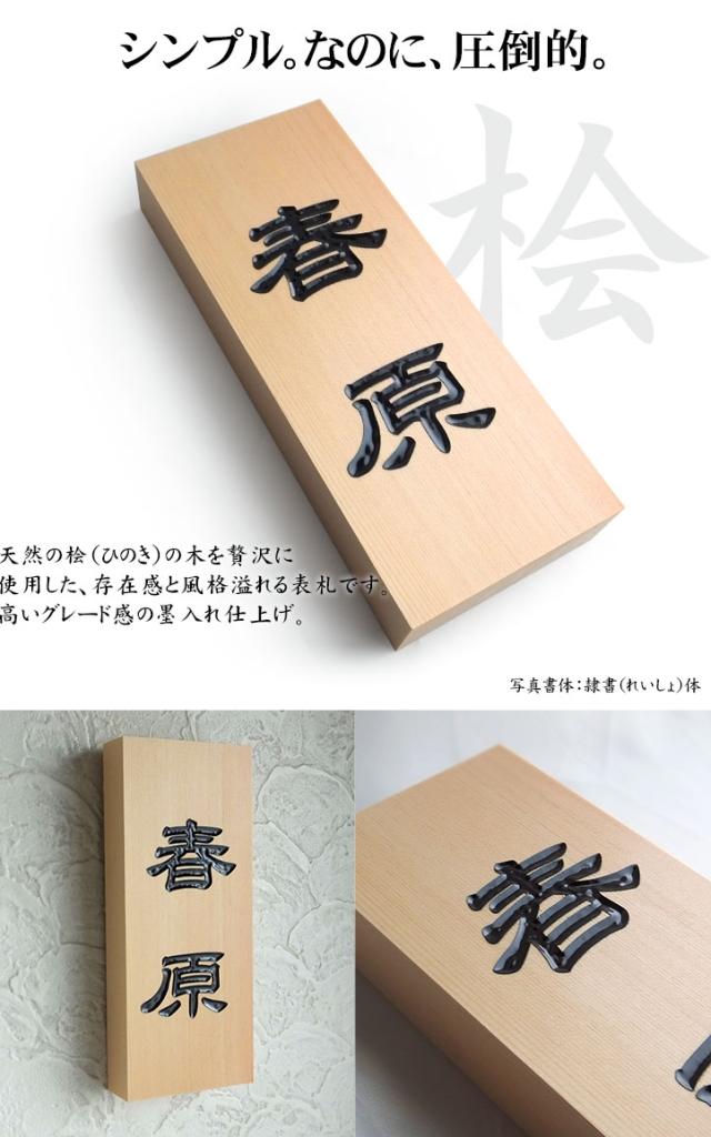 桧 檜 天然木 表札 木製 墨入れ仕上げ ネームプレート 墨入れ仕上げ 戸建 新築 アパート 事務所 オーダー 210mm×88mm×30mm だるま穴 取り付けビス付き