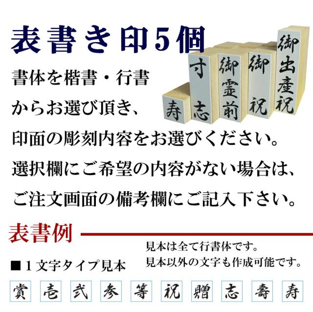 寿、内祝、出産祝い、御祝、お中元、お歳暮、御霊前、御佛前、御香典、御香料、御花料、御神前、御玉串料などの表書きにひとつあると重宝するゴム印!