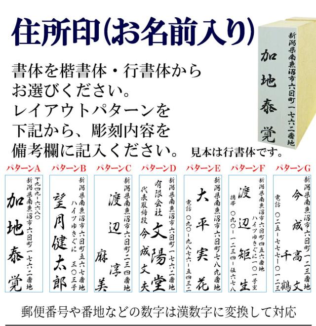 オーダー住所印×1個表書き印×5種