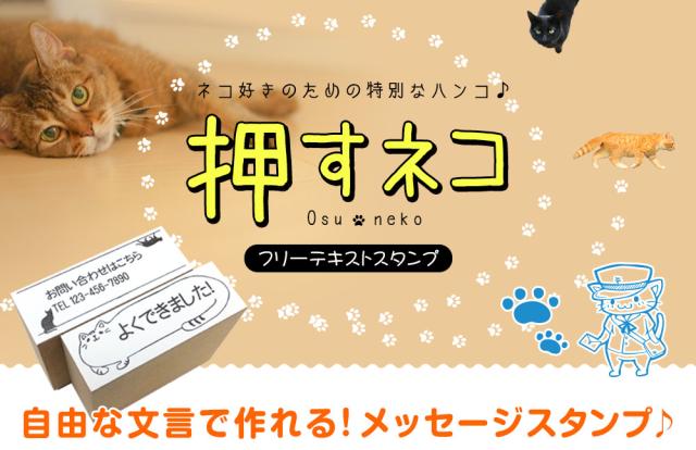 押すネコ ゴム印 スタンプ はんこ フリーテキスト 名前 メッセージ 封筒 はがき 60mm×20mm