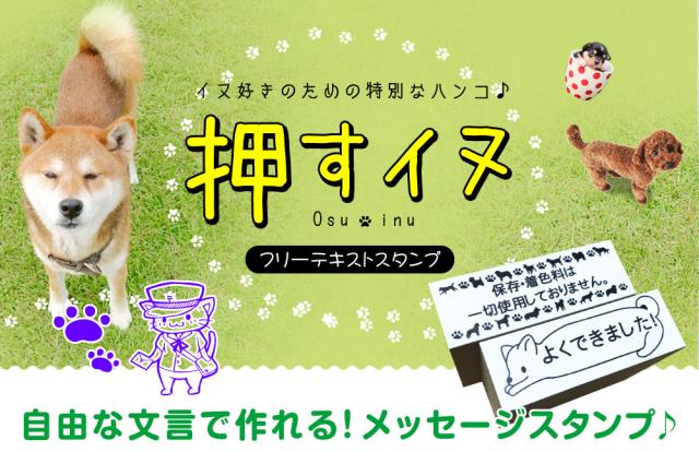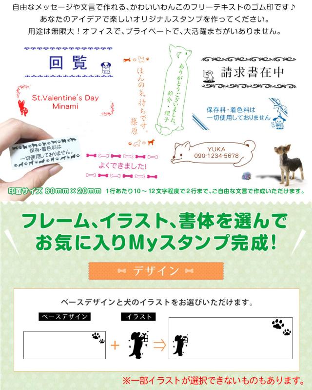 押すイヌ ゴム印 スタンプ はんこ フリーテキスト 名前 メッセージ 封筒 はがき 60mm×20mm