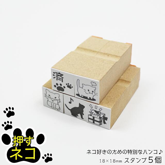 押すネコ ワンポイント スタンプ 5個セット はんこ イラスト 封筒 手紙 メッセージ 18mm×18mm