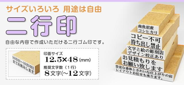 二行印 のべ板 12.5mm×48mm ゴム印 はんこ 判子 スタンプ ゴム印鑑
