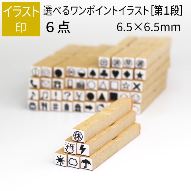 ワンポイント イラスト印 6個 6.5mm×6.5mm [第1段] 手帳 日記 連絡帳 スタンプ 小さい