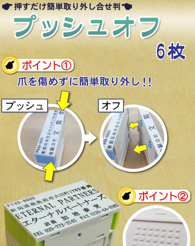 プッシュオフ 6枚 組み合せ印 親子印 ゴム印 印鑑 スタンプ 会社印 社判 オリジナル 組合わせ 自由 オーダー 横判 住所 名前 社名 5サイズ