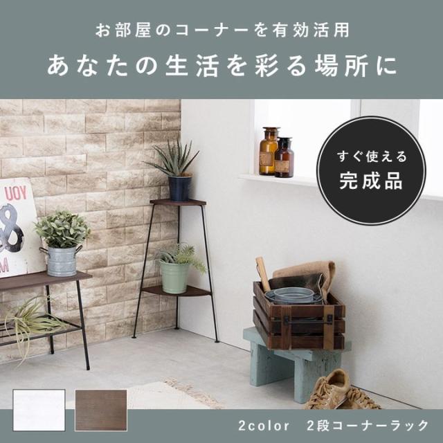 コーナーラック 2段 ディスプレイラック おしゃれ シンプル アイアン パイン材