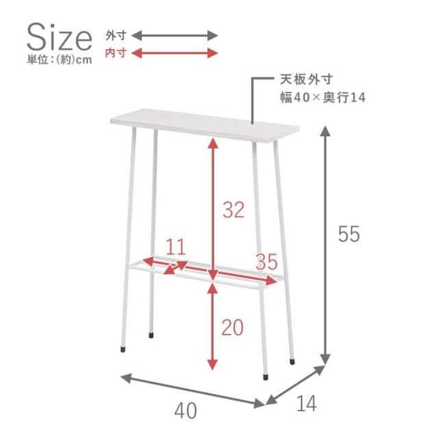 2段ラック スリムラック 壁面 ディスプレイラック ミニテーブル 幅40 奥行14 高さ55cm 完成品