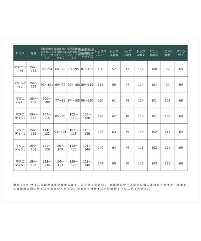 品質=身生地:ポリエステル65%・綿35%(カットソー) トップス:前ボタン開き 授乳機能付 ポケット:両脇 パンツ:ボタン付ゴム仕様(ウエスト調節可) 原産国:中国製 洗濯表示:洗濯機OK ネット使用