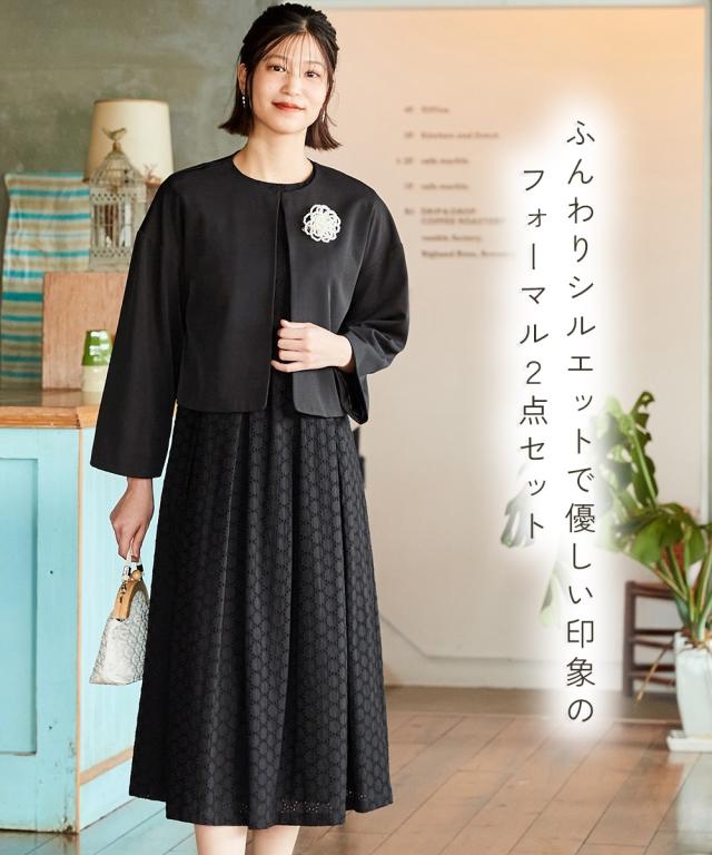 ワンピース フォーマル 大きいサイズ レディース 入園 入学 卒園 卒業 総レース アンサンブル 黒 4L/5L/6L ニッセン nissen