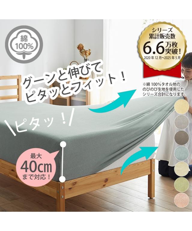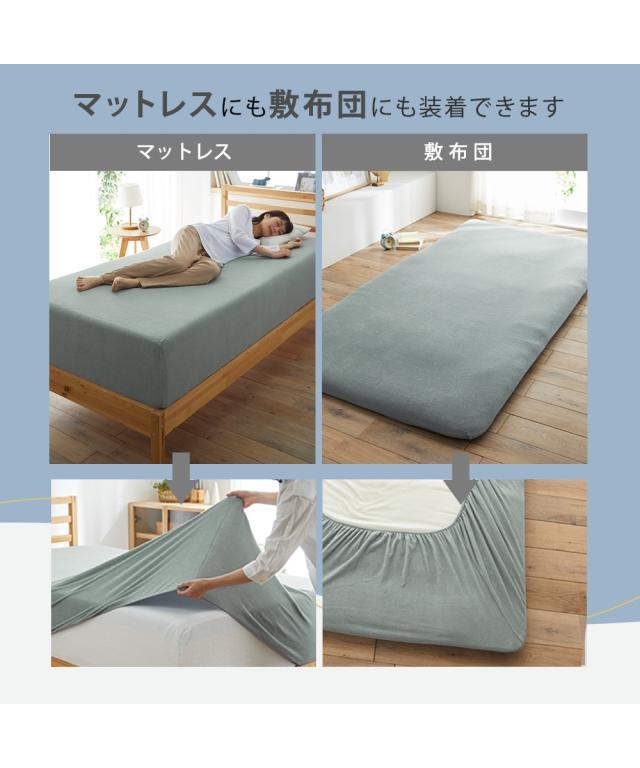 シーツ 綿100% タオル地 のびのび マットレス 敷布団兼用 セミダブル-ダブル グレイッシュブルー/ダルピンク/チャコールグレー/ピスタチオグリーン/ラテベージュ カバー 寝装 寝具 ニッセン nissen