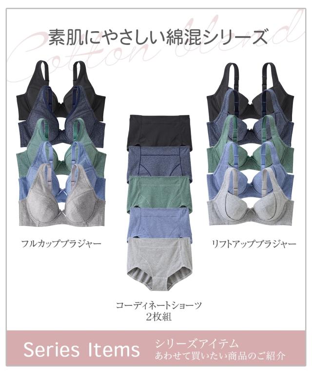 素肌にやさしい綿混で汗もしっかり吸収。暑くなるこれからの季節にうれしい綿混フルカップブラジャー。脇高設計で気になるハミ肉をおさえ、カップ上辺とバック部分にはパワーネット裏打でしっかりホールド。サイドボーンなし仕様でくいこみもなくやさしい着け心地です。