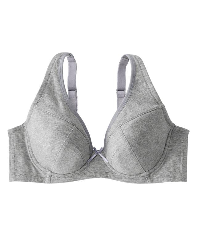 素肌にやさしい綿混で汗もしっかり吸収。暑くなるこれからの季節にうれしい綿混フルカップブラジャー。脇高設計で気になるハミ肉をおさえ、カップ上辺とバック部分にはパワーネット裏打でしっかりホールド。サイドボーンなし仕様でくいこみもなくやさしい着け心地です。