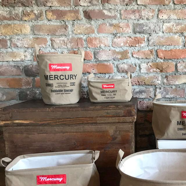 シンプルでレトロなデザインとカラーバリエーションが豊富なマーキュリー雑貨は、ガレージ収納やアウトドアの場でも大活躍します。水や汚れに強いので、薪入れやゴミ箱として使ったり、食材や道具を収納したりと、個性を出しながら便利にお使いいただけます。不要になったら小さくたためるところもうれしい特徴です。