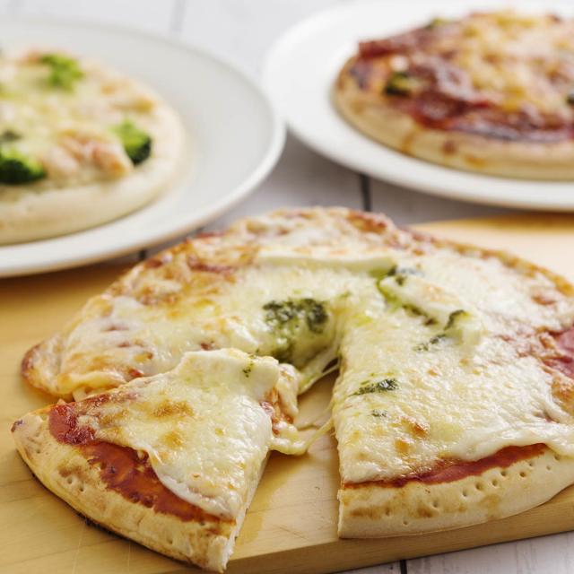 【原材料】【マルゲリータピザ】ナチュラルチーズ(ゼラチンを含む)(北海道製造、ニュージーランド製造)、ピッツァクラスト(小麦を含む)(国内製造)、トマトピューレ、ジェノバペースト、チキンコンソメパウダー(大豆を含む)、フライドオニオン、食塩、香辛料/調味料(アミノ酸等)、香辛料抽出物、ウコン色素【シーフードピザ】ピッツァクラスト(国内製造)、生乳、ナチュラルチーズ、えび、ゆでかに、ブロッコリー、フライドオニオン、小麦粉、バター、生クリーム、ジェノバペースト、食塩、チキンコンソメパウダー(大豆を含む)、黒胡椒、シーズニング(卵を含む)/調味料(アミノ酸等)、pH調整剤、リン酸塩(Na)、香辛料抽出物、安定剤(増粘多糖類)、ウコン色素【ミックスベジタブル】ピッツァクラスト(小麦を含む)(国内製造)、野菜(ピーマン、かぼちゃ、じゃがいも、ブロッコリー)、トマトピューレ、ナチュラルチーズ、ベーコン(卵・豚肉を含む)、チキンコンソメパウダー(大豆を含む)、フライドオニオン、食塩、香辛料/調味料(アミノ酸等)、カゼインNa、リン酸塩(Na)、酸化防止剤(V.C)、香辛料抽出物、発色剤(亜硝酸Na)、着色料(コチニール、ラック、ウコン)