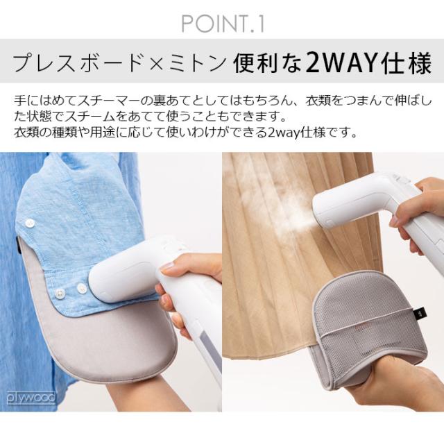 ハンガーにかけたまま、手軽に衣類のシワが伸ばせる衣類スチーマー用ミトンです。