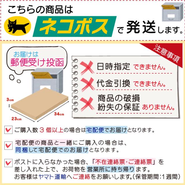 ◎ネコポスは代引き決済がご利用頂けません。 ◎お届けの日時指定はできません。 ◎商品の保証はありません。お届けはポスト投函となります。