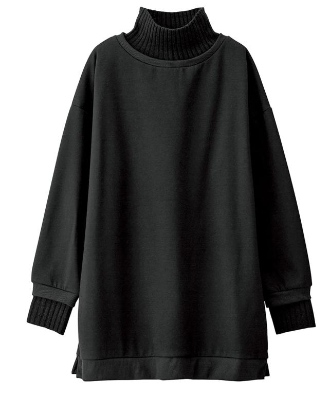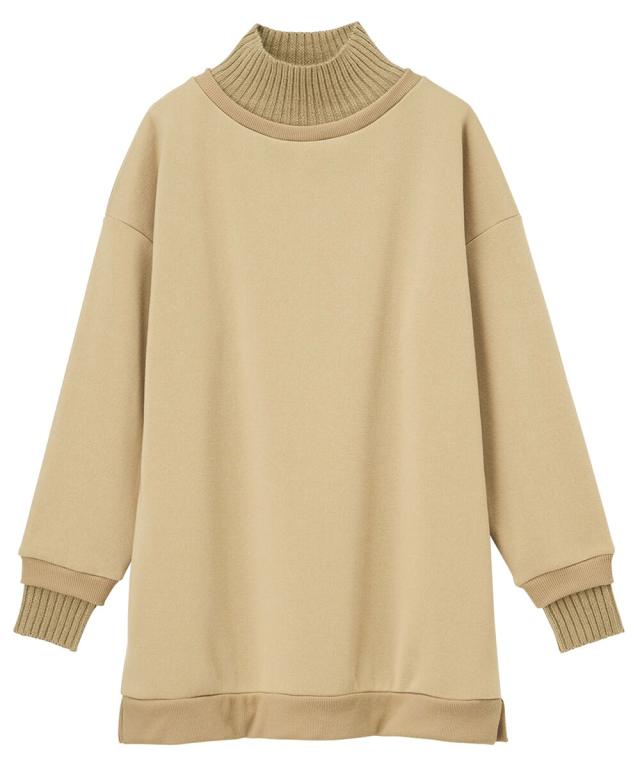 ニット切替裏起毛ハイネックゆるスウェット