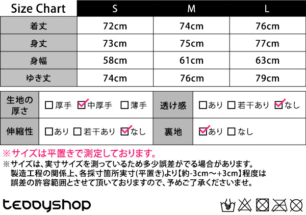 製造工程の関係上、各採寸箇所実寸(平置き)より【約-3cm〜+3cm】程度は
