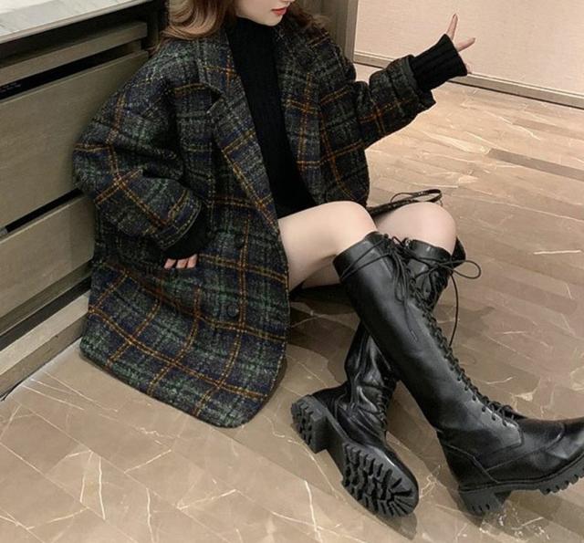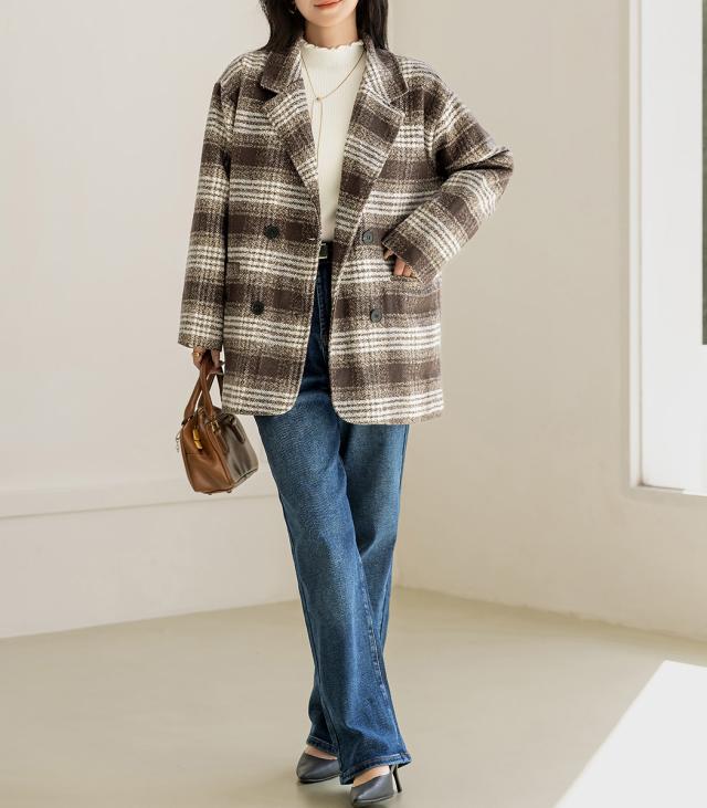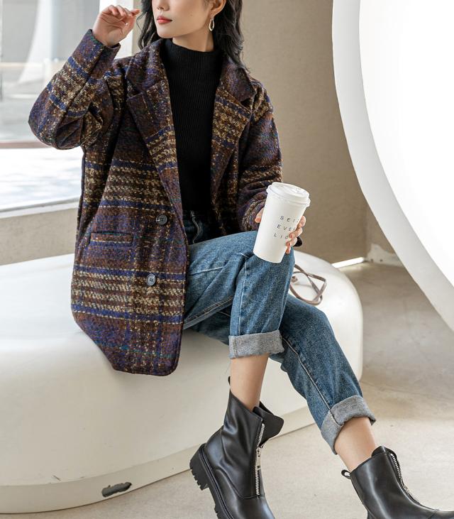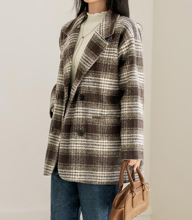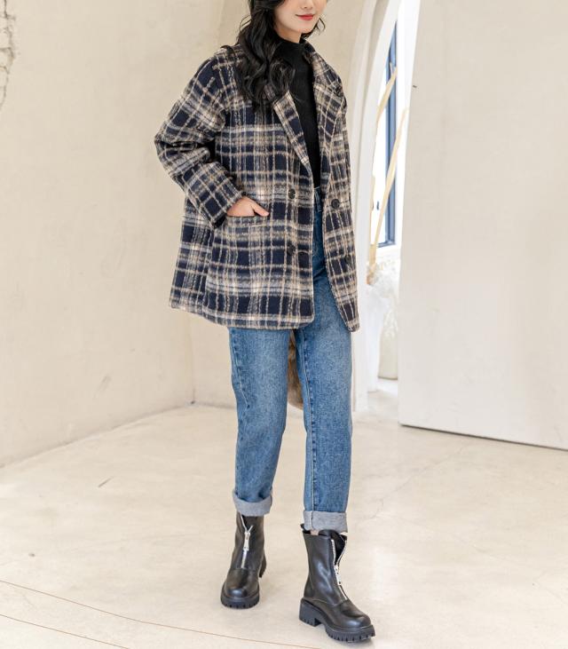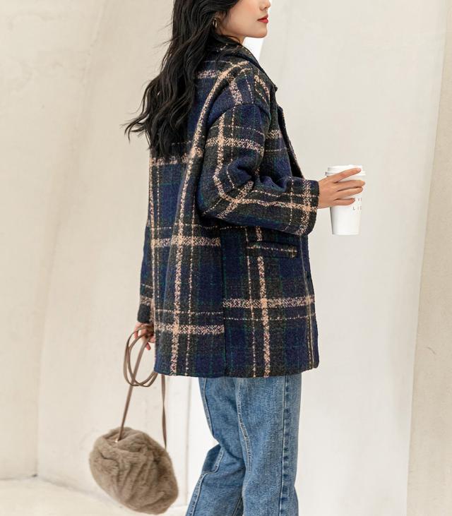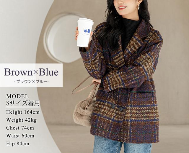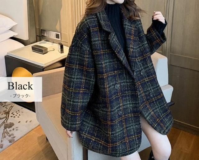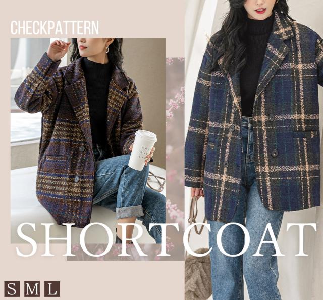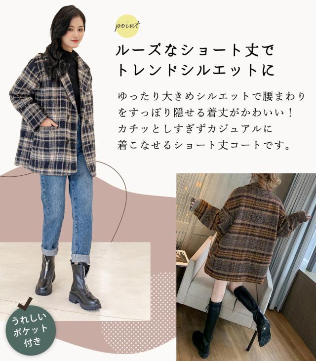 春新作 コート レディース 秋冬 アウター ショート丈 ダブルコート 中厚手 オーバーサイズ ゆったり 大きいサイズ ポケット 防寒 裏地あり グレンチェック お洒落 可愛い シンプル カジュアル フォーマル ビジネス キレカジ オフィス エレガント フェミニン お出かけ