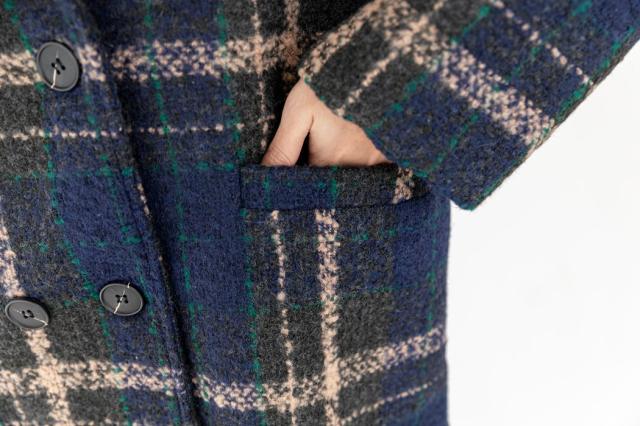 ダブルボタンとボリューム感でレトロでオシャレな印象に。