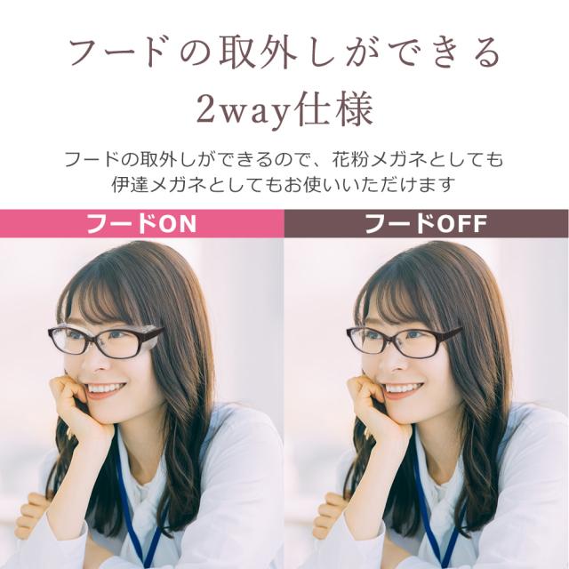 花粉メガネ フードの取れる 花粉対策 眼鏡 大人用 くもり止め 防曇 飛沫防止 メガネ アイシールド 調整可能 防曇加工 UVカット