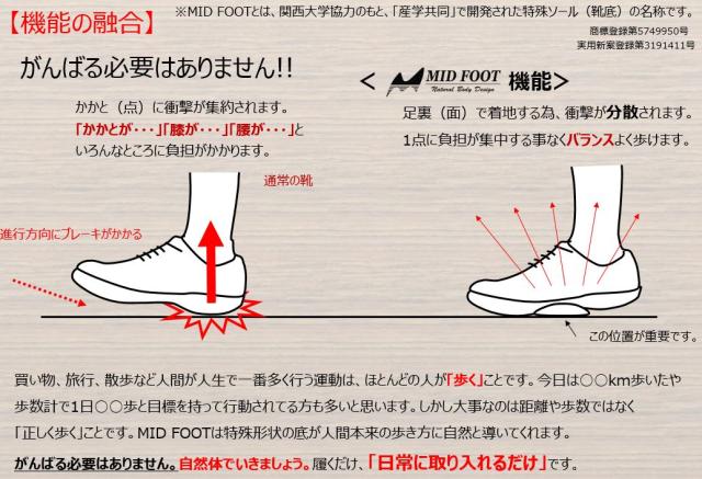 MIDFOOT システムによる 省エネ 歩行 ができる 快適 コンフォートシューズ 。