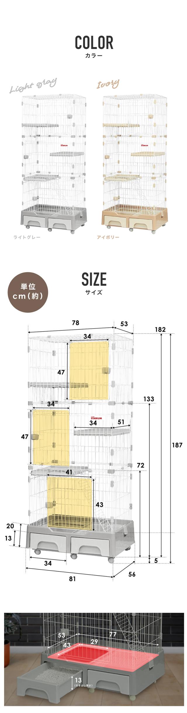キャットケージ トイレ付き 3段 【収納トイレで砂が飛び散りにくい猫ケージ】猫ケージ ケージ ペット 猫 キャット 収納 キャスター付 コンパクト 多段 猫ゲージ 猫用ケージ 多頭飼い 引き出し トレー おもちゃ入れ キャットタワースタジアム