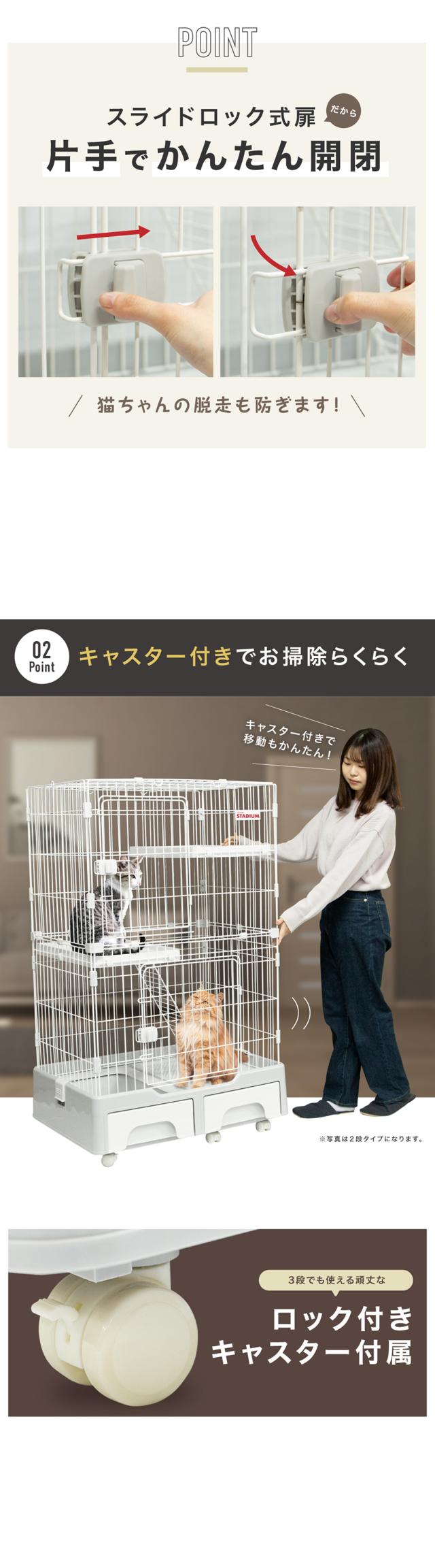 検索用:キャットケージ キャットゲージ 猫ケージ 室内飼い 猫 ネコ ねこ キャット 猫用 ペットケージ ペットケージ 3段 扉付き キャスター付 ロック トイレ付 トイレ収納型