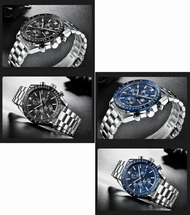◆高品質最新クロノウォッチ ブラックorブルー◆