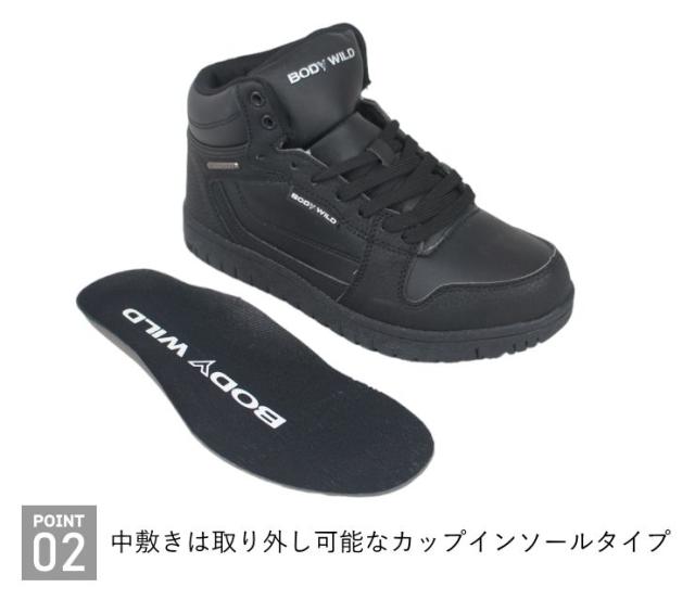 スニーカー レディース 白 ホワイト 黒 ブラック 防水 ボディワイルド BODY WILD ハイカット Hi 雨 雪 tabls5548