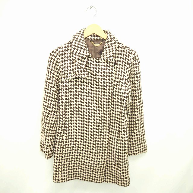 【中古】ロペ ROPE コート アウター ステンカラー ミドル 千鳥格子 ウール 7AR 茶 薄茶 ブラウン ライトベージュ