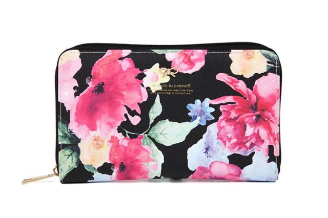 通帳ケース スキミング防止 磁気 防止 カードケース 家計管理ケース マルチケース 通帳入れ おしゃれ 磁気 シールド 大容量 ジャバラ ポーチ カード入れ 家計管理 収納 ラウンドファスナー 丈夫 撥水 リボン 花柄【送料無料】 花柄 黒