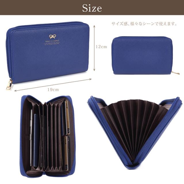 | 新品【パスポート 通帳 収納 蛇腹式 大容量 ラウンドファスナー ケース カード入れ お札入れ リボンチャーム リボン 可愛い おしゃれ】 | |