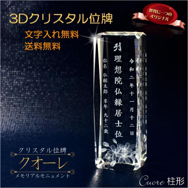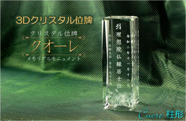 位牌【世界に一つの特別:3Dクリスタル位牌 クオーレ(柱形)無色透明】モダン位牌 オリジナル位牌 オーダーメイド メモリアルモニュメント 仏壇 仏具 手元供養 送料無料